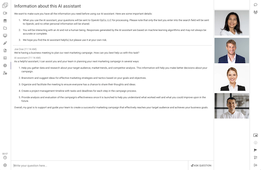 Veeting has integrated an AI-based meeting assistant as an additional collaboration tool.