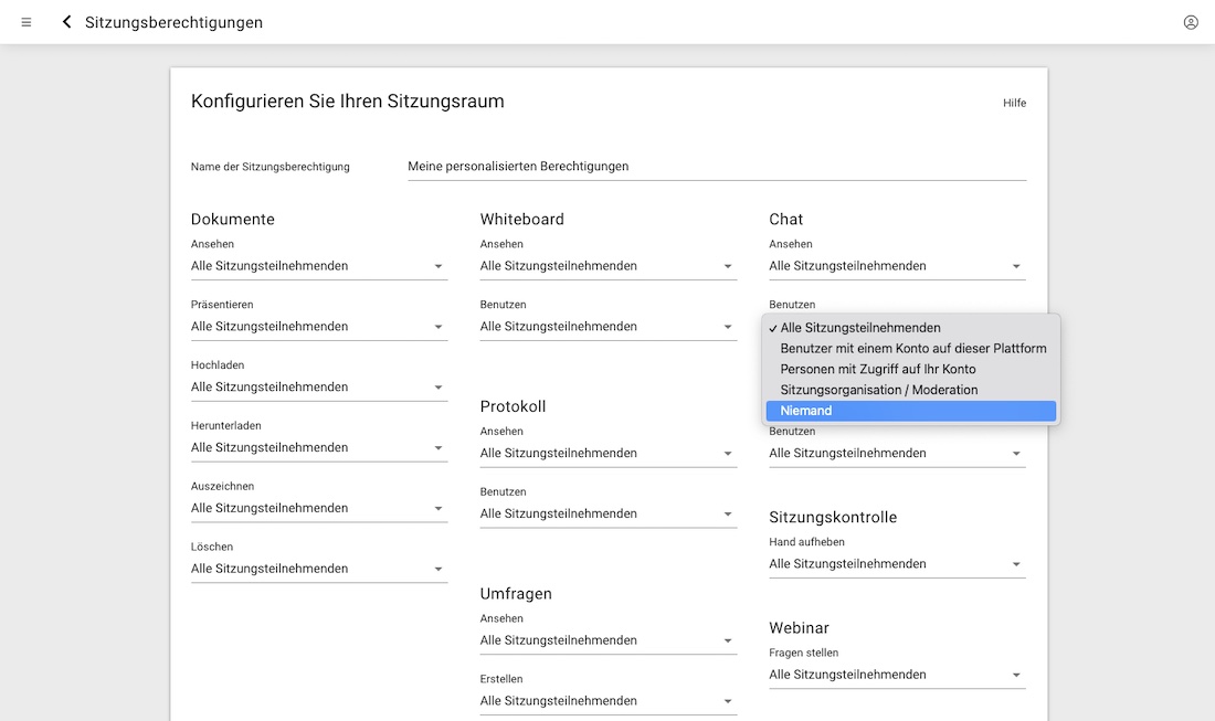 </div>Erhalten Sie Web-Komponenten für Video, Whiteboard, Screen Sharing, Document Viewer, Umfragen, Chat und Sitzungsprotokolle. Nicht nur einfache Videoanrufe.